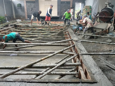 - Pengecoran dinding t:20cm dan lantai t:25cm
